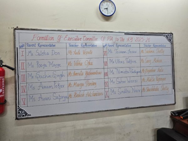 A Parent-Teacher Association (PTA) meeting was held in the school to discuss important academic and administrative matters. The meeting was conducted under the guidance of the Principal, who addressed the parents and teachers, highlighting the progress of students and various initiatives undertaken by the school.