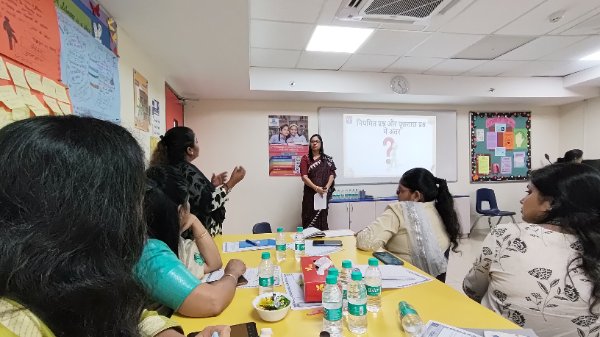 The programme was held in two slots – from 9:30 a.m. to 10:30 a.m. for afternoon shift teachers and from 2:00 p.m. to 3:00 p.m. for morning shift teachers. The session took place in the school library, providing a conducive atmosphere for interactive discussions and learning.