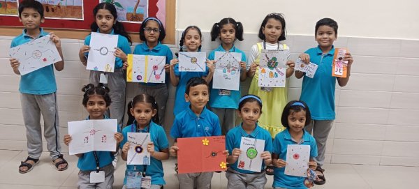 Students participated in theme-based activities and competitions according to their levels. The younger students engaged in making and colouring Raksha Bandhan greeting cards, using materials such as crayons, sketch pens, stickers, and glue sticks. Slightly older students created their own Rakhi using craft materials like wool, ribbons, decorative stones, beads, and buttons.