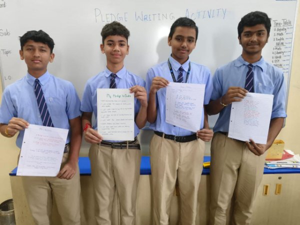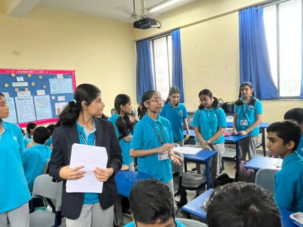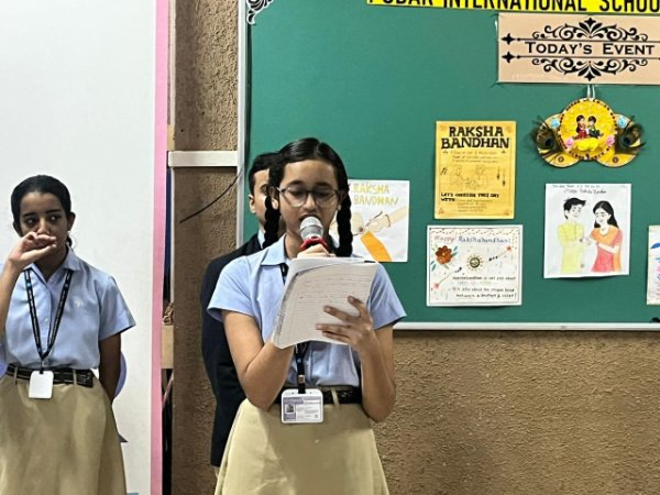 Other students participated in competitions where they could either make a Rakhi in school or create a Raksha Bandhan-themed greeting card for a sibling or a soldier, using threads, ribbons, decorative items, glue, paper, and colours. Senior students took part in a debate on an environmental theme as part of Vrikshabandhan, with the topic being announced a day prior.