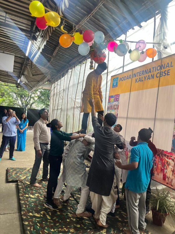 Under the guidance of Physical Education teachers, the main Dahi Handi pot-breaking event was conducted. Students formed human pyramids with the help and supervision of teachers, ensuring both excitement and safety. The atmosphere was filled with cheer as the handi was finally broken, marking the highlight of the celebration.