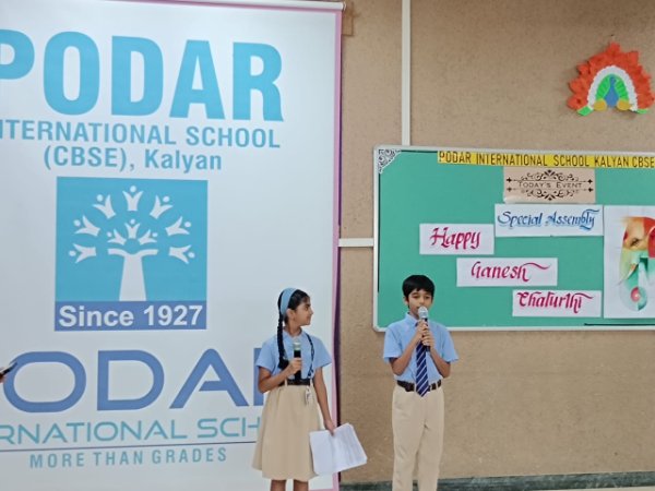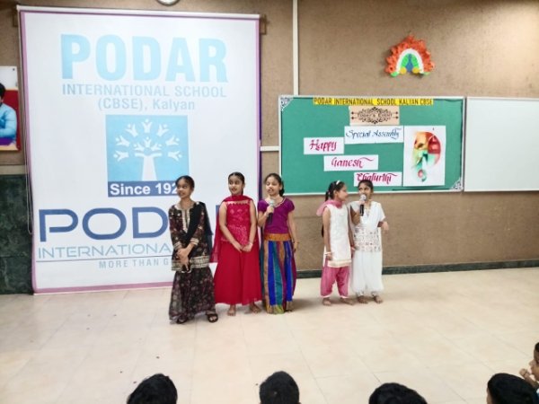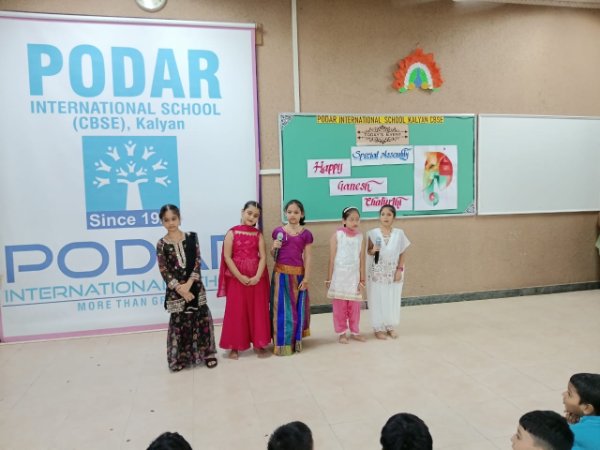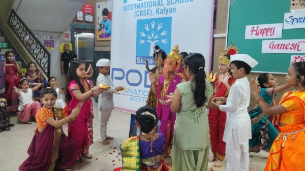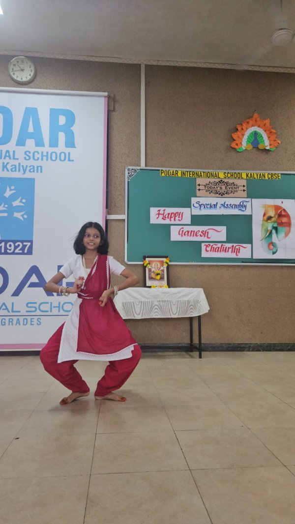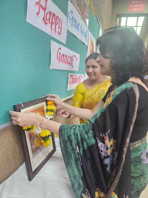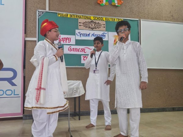 The auspicious festival of Ganesh Chaturthi was celebrated in our school with great devotion and enthusiasm. Primary and secondary students actively participated in the celebrations by presenting dance performances, melodious singing, and a short skit, filling the school with festive joy and cheer.