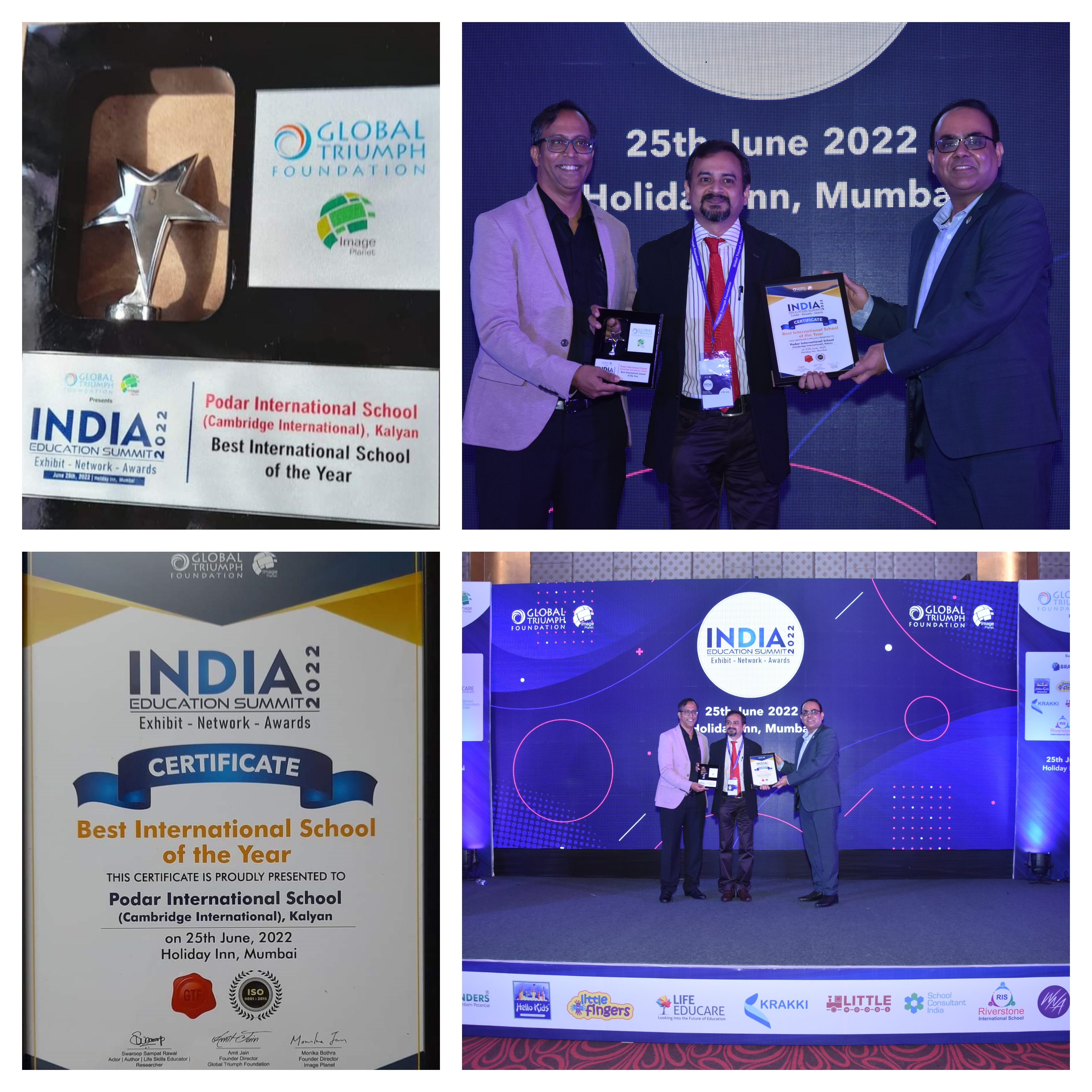 On 25th June 2022 Podar International School (Cambridge International), Kalyan received #India Education Summit @ Holiday Inn, Mumbai as Best International School of the Year.