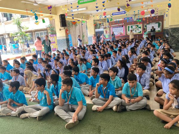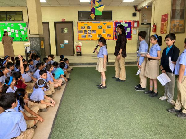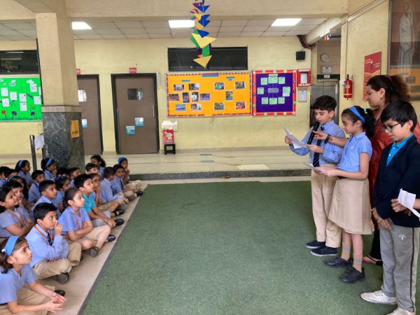Students of 9C and 3B took center stage, conducting a vibrant and colourful Navratri special assembly. Dressed in stunning traditional attires, each colour symbolized a goddess of Navratri, adding meaning and beauty to the occasion.