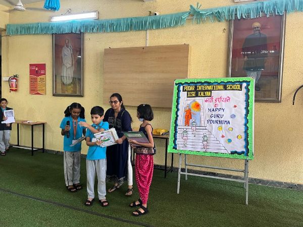Guru Purnima assembly was conducted today by the students of class VIII A which brightened the aura of Podar International School ICSE, Kalyan. It commenced with the soulful redention of the school prayer, invoking blessings of the Almighty.The captivating performance included thoughts and inspirational speech that acknowledged the unwavering dedication, wisdom and selfless commitment of the teachers.