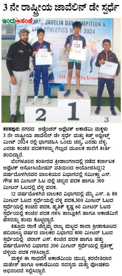 The young athletes Rithik Krishna of 5th grade won bronze in the under-10 boys 60m race, and Sama...