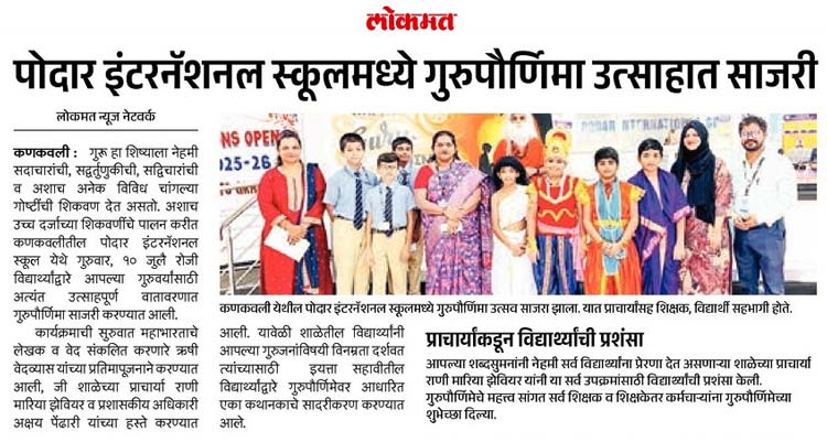 Publication : PudhariPodar International School Kankavli celebrated Gur...