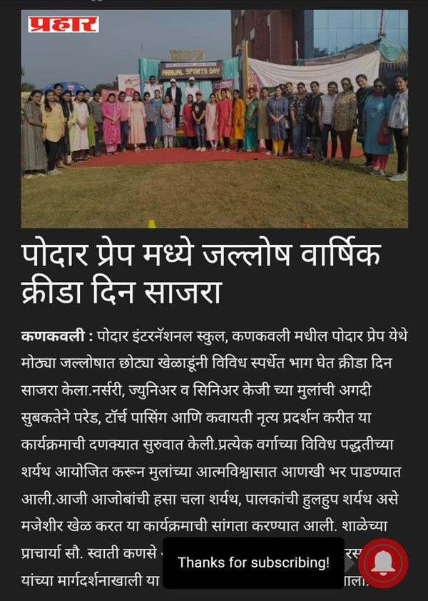Podar Prep Media Coverage Kankavli, Maharashtra