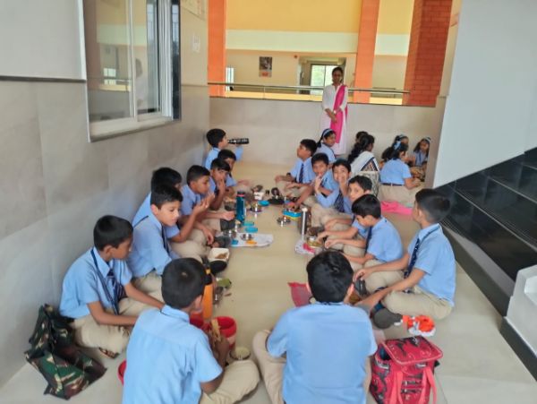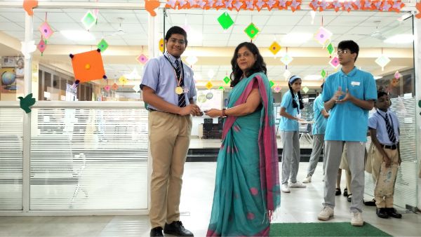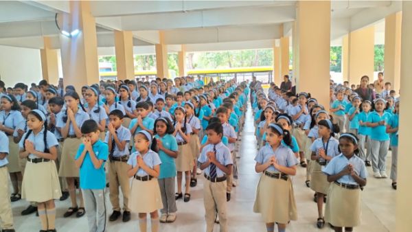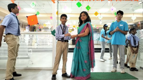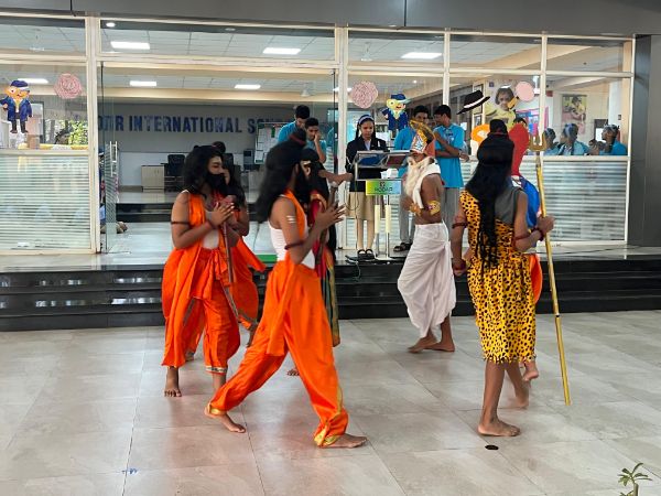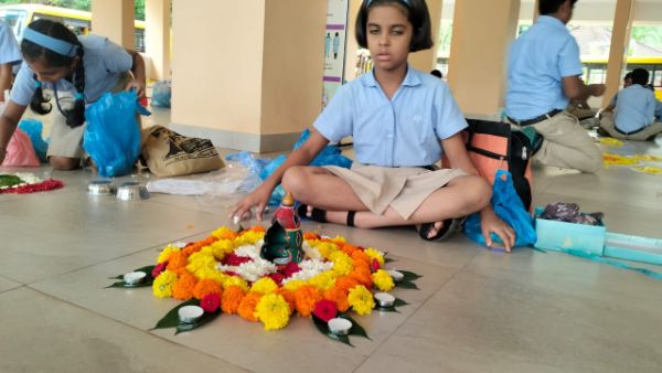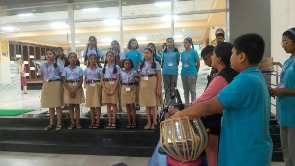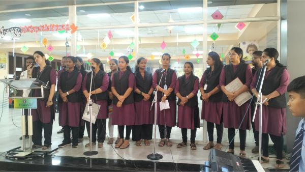 The students sang bhajans which gave them a moment of reflection and connection to their cultural and spiritual heritage. It fostered a sense of inner peace and mindfulness amidst the academic hustle.