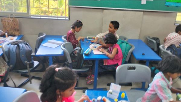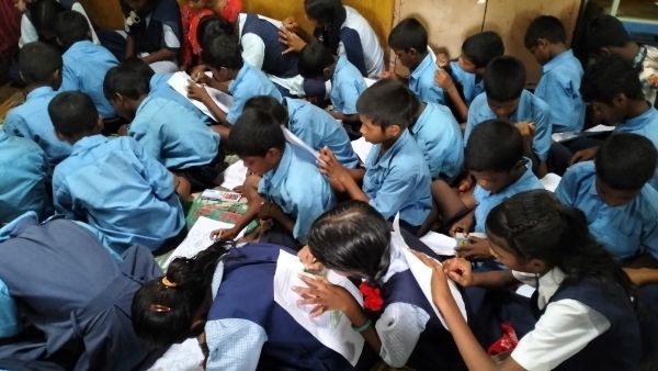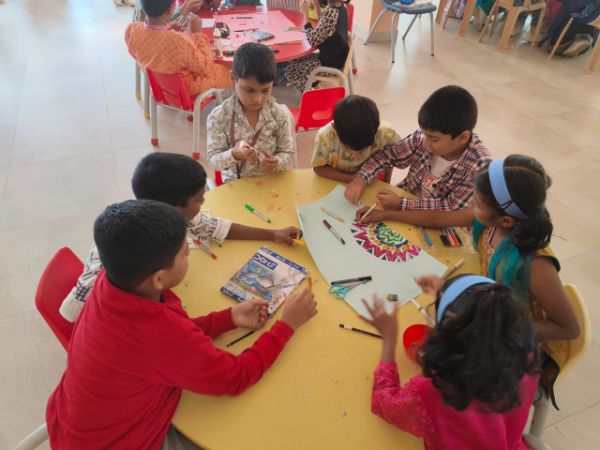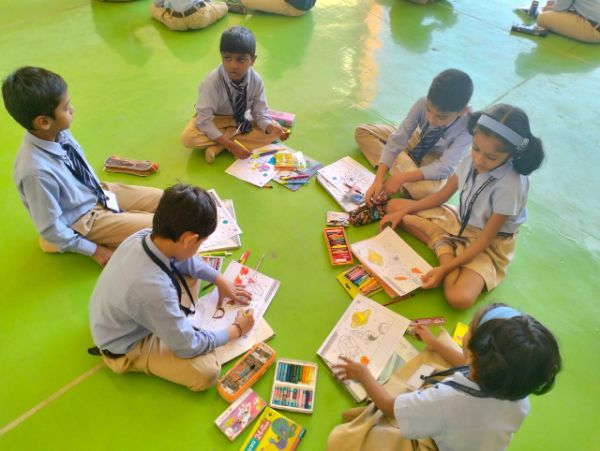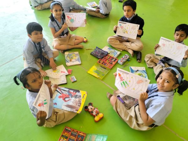 Students of Katkeri Samaj and Podar students enjoyed a coloring competition held just for delight.
