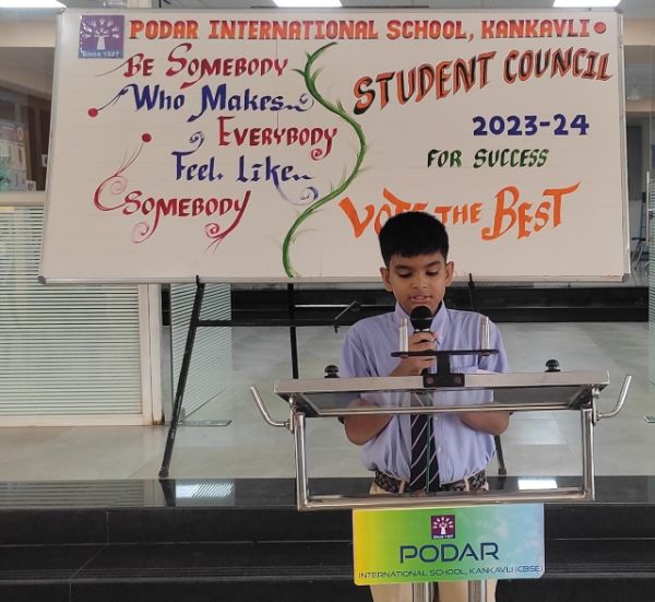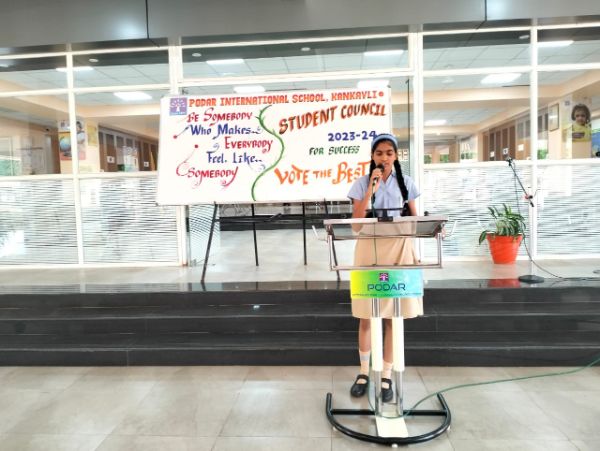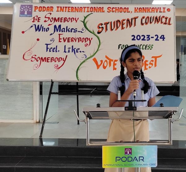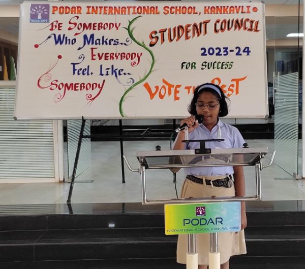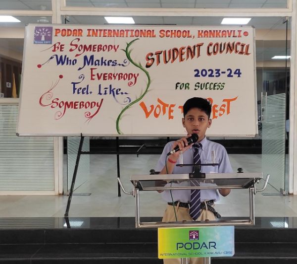 Students and staff at Podar International School Kankavli, have cast their votes for the academic year 2024-2025 Student Council election.