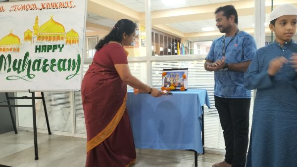 Our respected Principal Ma'am Mrs.Raani Maria Xavier led the worship of Lord Vithhal and Rukmini's portrait. The atmosphere was filled with melodious songs sung by students to their cultural and spiritual heritage. It fostered a sense of inner peace and mindfulness amidst the academic hustle. We also honored Muharram, sharing its significance with our students, who came dressed in traditional attire for both celebrations, reflecting our commitment to cultural diversity and unity.