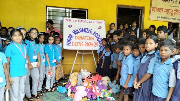 Podar International School, Kankavli conducted a special donation drive to encourage students to give back to their communities. Our principal, Mrs. Rani Maaria Xavier Mam, inspired the students to organize the donation drive under the Podar Volunteer Program. It instills in students the idea that they can make the world a better place by caring and developing social-emotional skills.