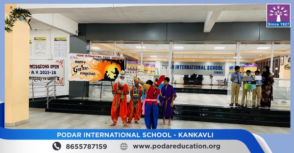 Celebrating Guru Purnima with reverence and gratitude at Podar International school, Kankavli! Today, our school assembly was a heartfelt tribute to teachers and the wisdom of Maharshi Vyas. Our respected Principal Ma'am led us in honoring Maharshi Vyas with a garland, symbolizing our respect for the guru-shishya tradition.