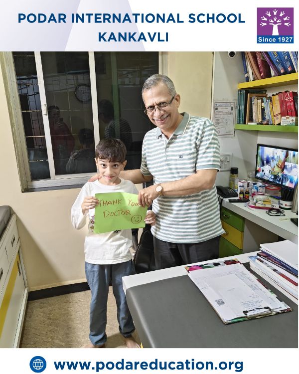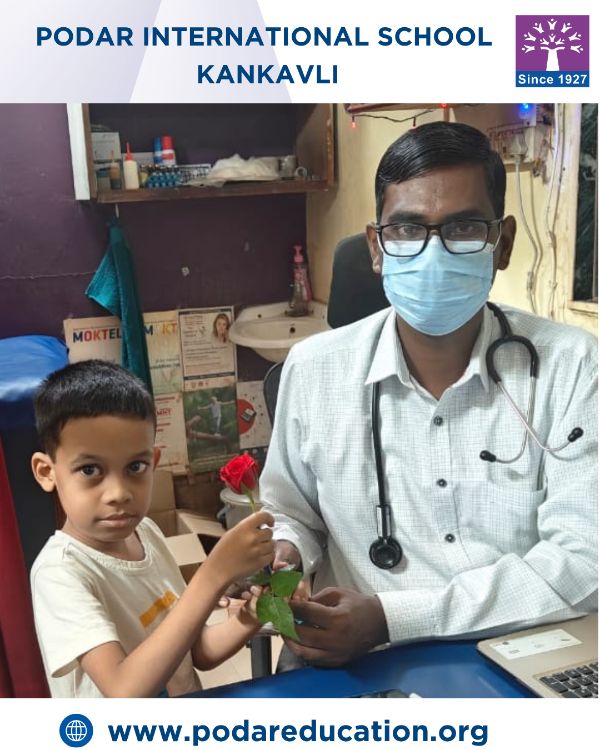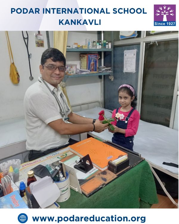To honor the dedication and selfless service of our healthcare heroes, students of Podar International School #Kankavli visited local doctors and expressed their heartfelt gratitude by presenting them with a Thank You card and a flower.