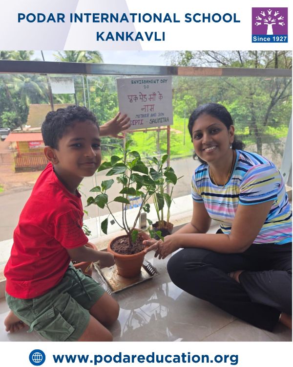 In a heartfelt Eco Club initiative, students of Podar International School #Kankavli celebrated World Environment Day by planting a sapling with their mothers under the theme "Ek Ped Maa Ke Naam".