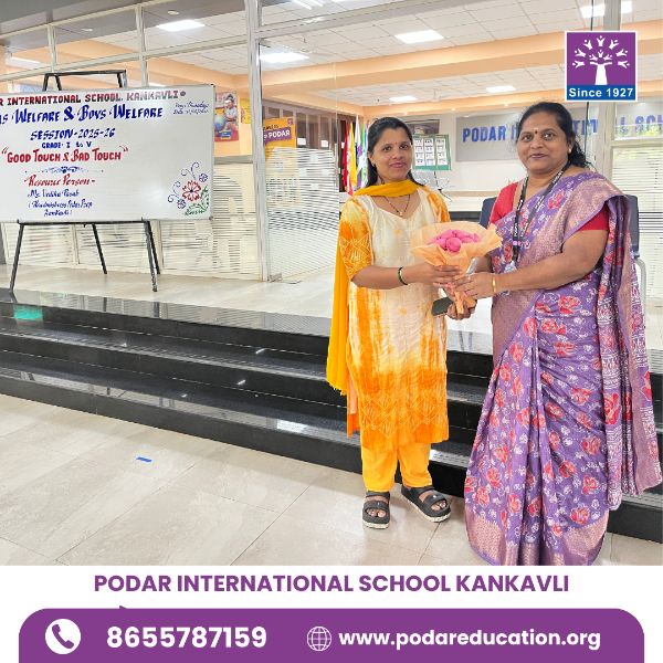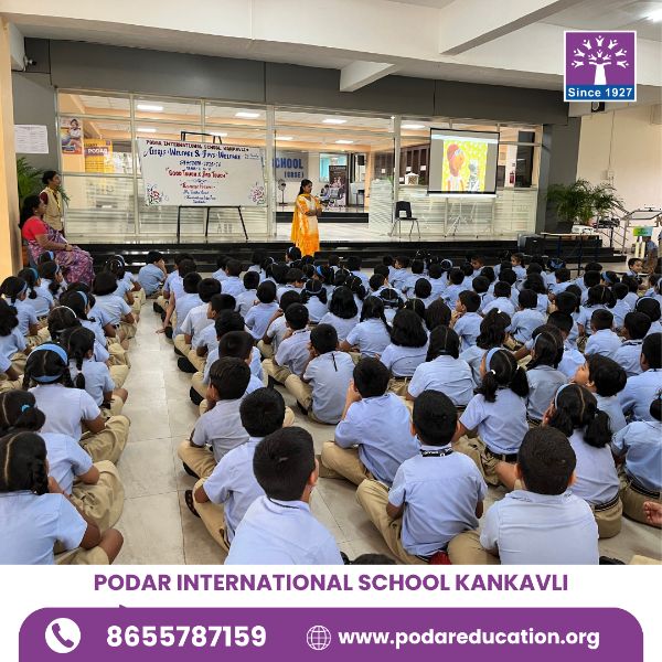 Podar International School, #Kankavli conducted an insightful session on “Good Touch and Bad Touch” for students from Grade 1 to Grade 5, led by the Headmistress of Podar Prep, Mrs. Vedika Parab.
