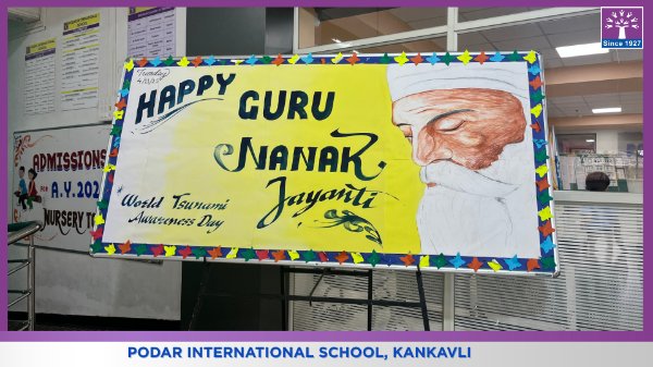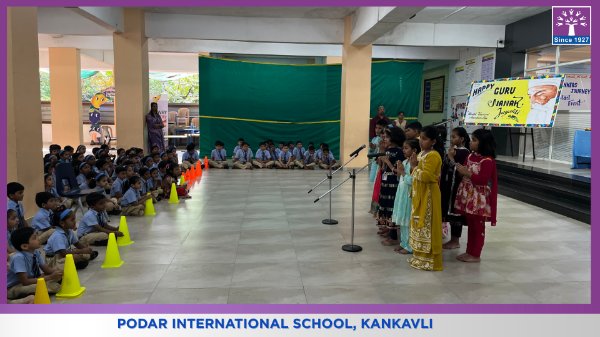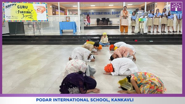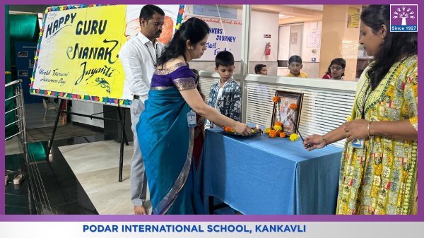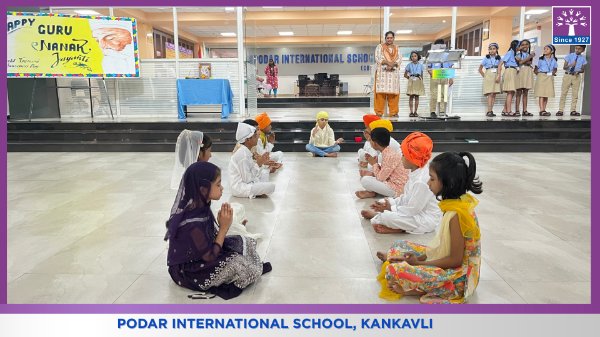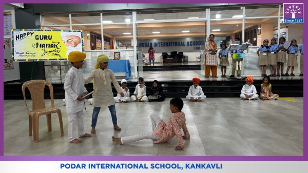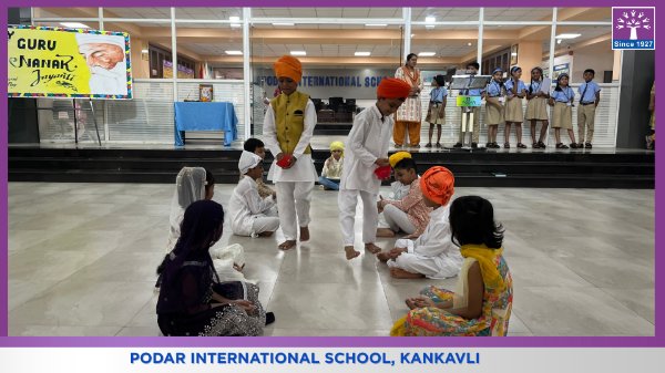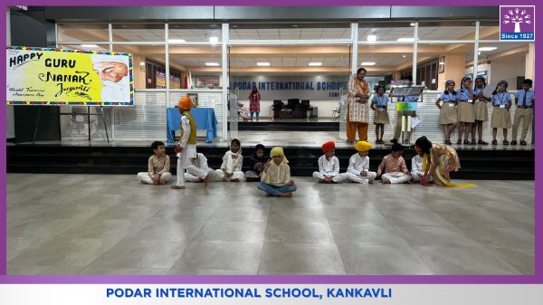 The Children's Day celebration at Podar International School, Kankavli, was a delightful occasion filled with joy, creativity, and warmth. The day began with a solemn and respectful moment as the students and teachers gathered to offer a garland to the portrait of Pandit Jawaharlal Nehru, the visionary leader and the first Prime Minister of India, in honor of his contributions to the nation and his love for children. The celebration also coincided with the auspicious occasion of Guru Nanak Jayanti, and a brief remembrance of Guru Nanak’s teachings and values was included in the morning’s rituals.