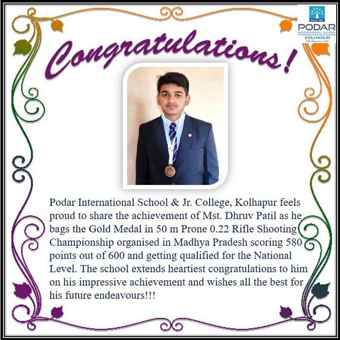 Achievement of Mst. Dhruv Patil in 50m Prone 0.22 Rifle Shooting Championship - 2022