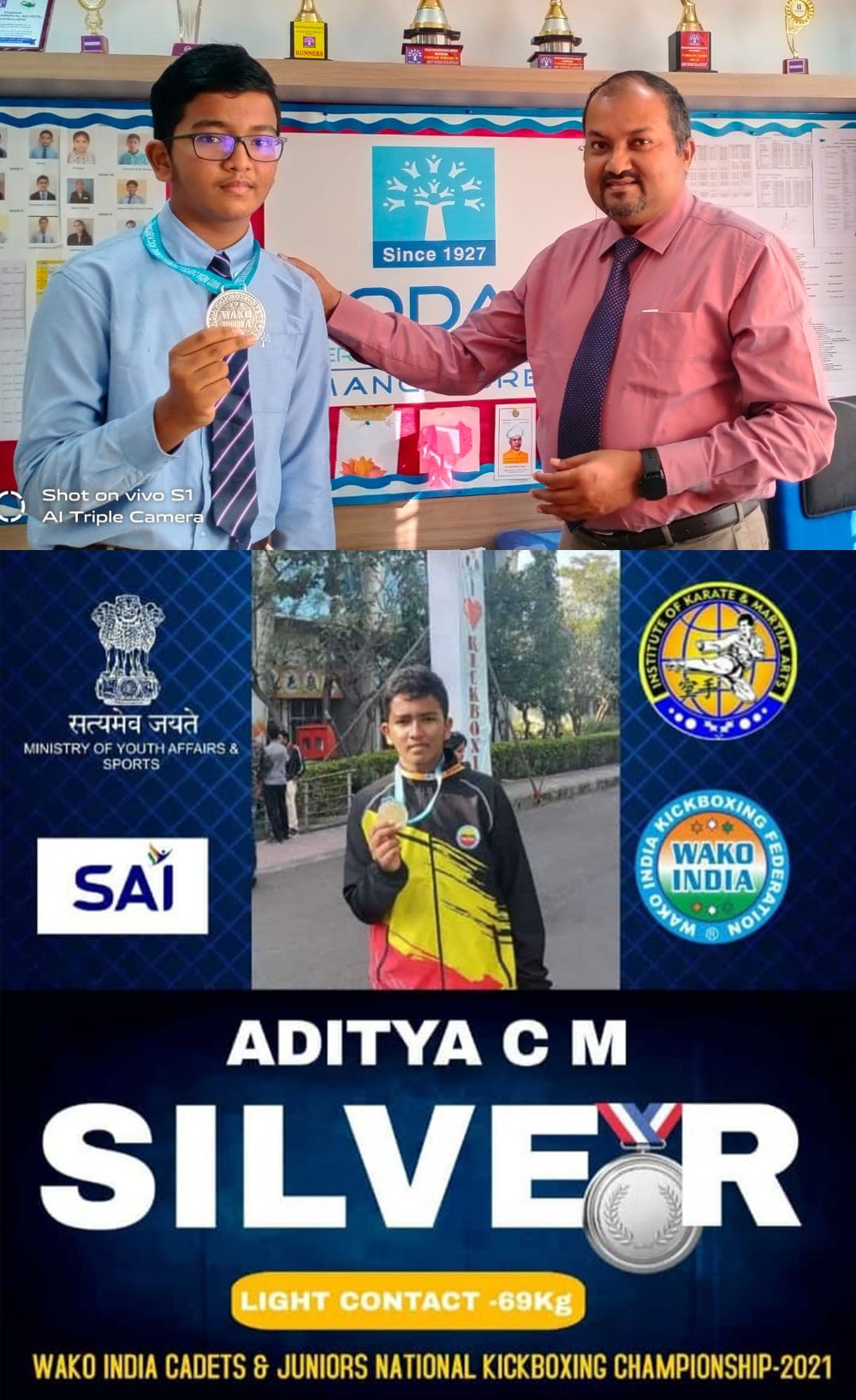 Podar International School, Mangalore is proud that ADITYA C.M. from Grade VIII, has reached step ahead in KICK BOXING sport by winning SILVER MEDAL in National level Tournament held at Pune from 21st Dec 2021 to 25th Dec 2021.