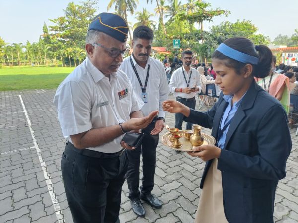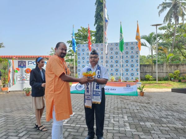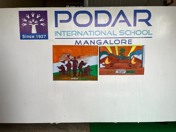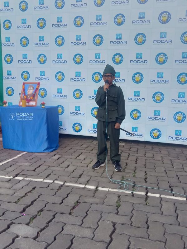 We honored Kargil Vijay Diwas at Podar International School, Mangalore. Ms. Jayalakshmi Sapna, our SEED coordinator, welcomed Mr. Kishan D K, a former Indian Army soldier and our current admin. The students and staff honored Mr. Kishan for his service.