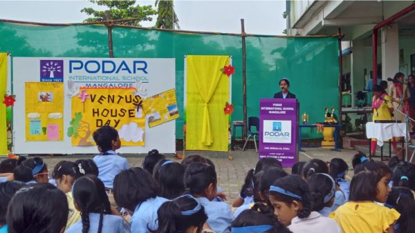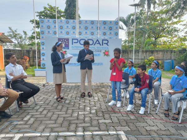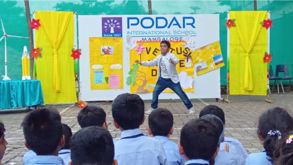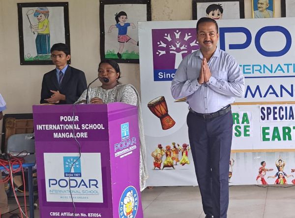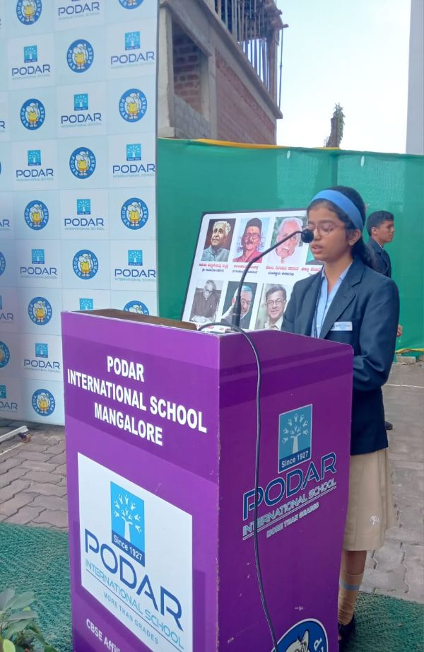 Podar International School, Mangalore, proudly organized Kannada Teru in a vibrant mode. We were honored to have Mr. Krishna Murthy D.B., Head of the Kannada Department and Lecturer from Kundapura R.N. Shetty P.U. College, as our esteemed guest.
