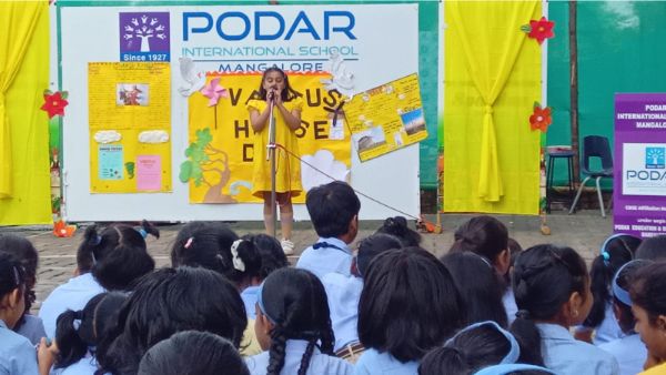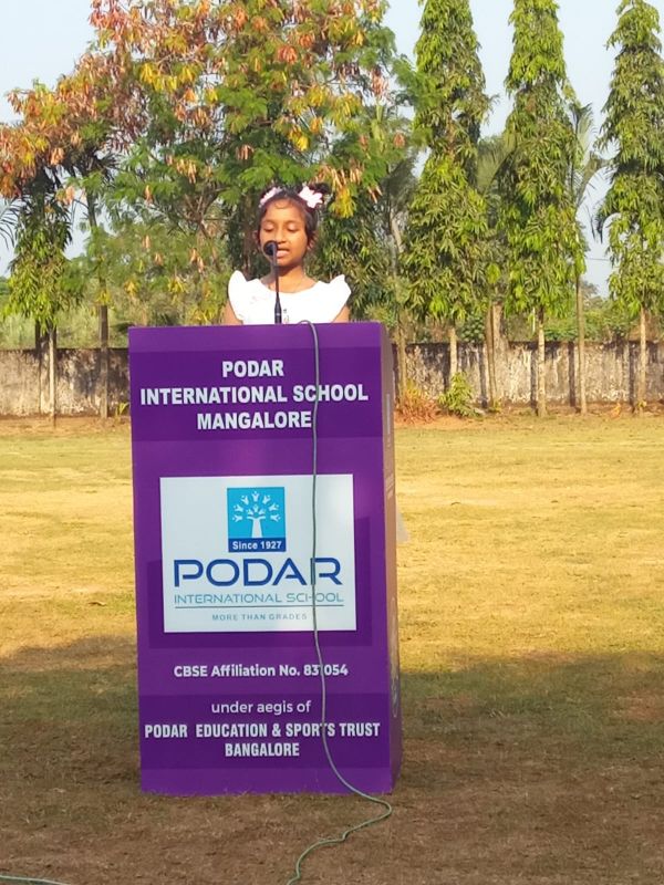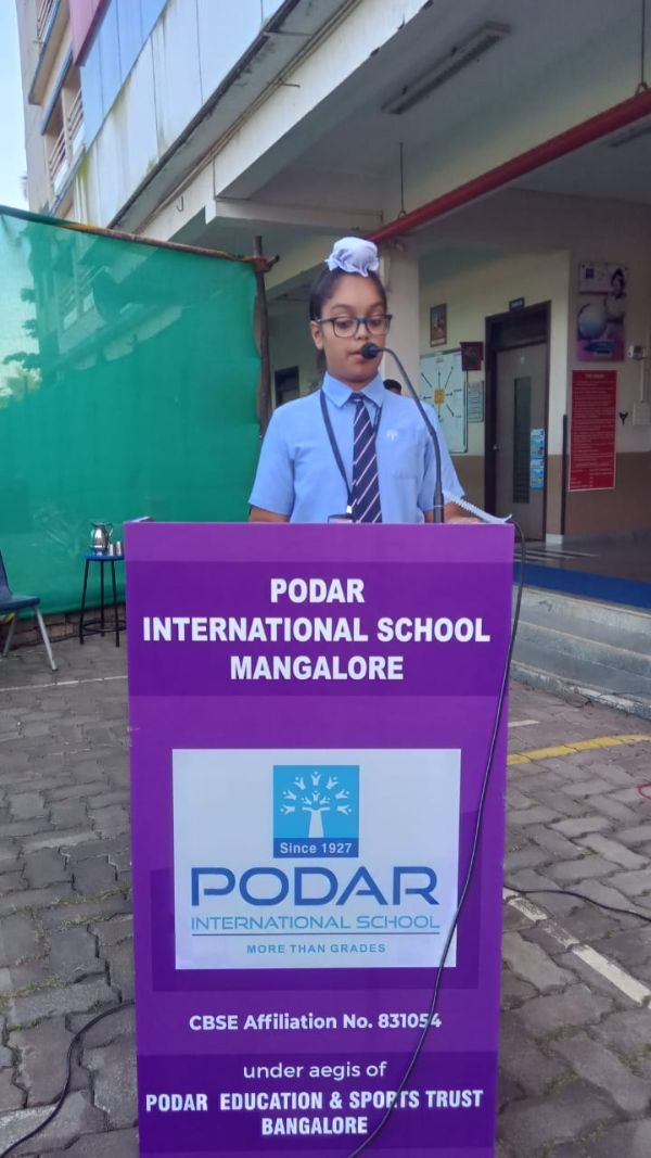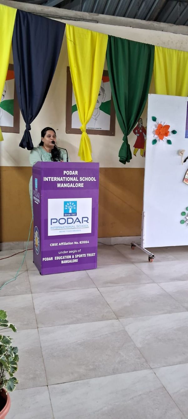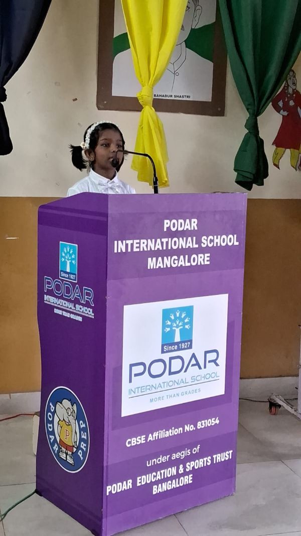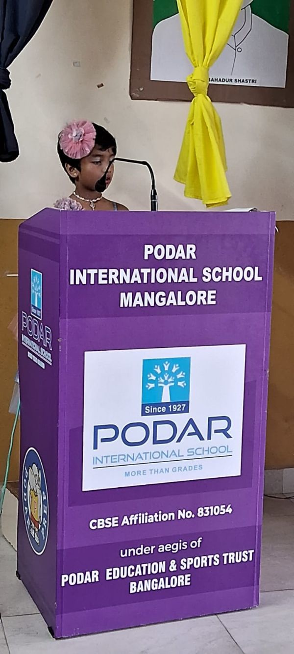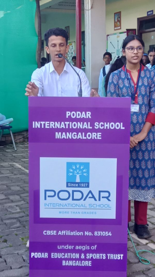 Podar International School, Mangalore, celebrated Hindi Divas with great enthusiasm on 14th September 2024. The event, aimed at honoring the significance of Hindi as the national language, was compared by Rahana Ganguly of Grade 8.