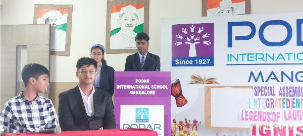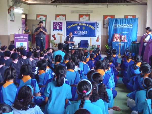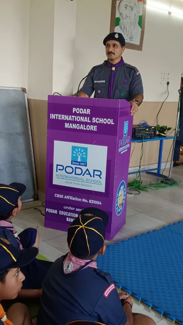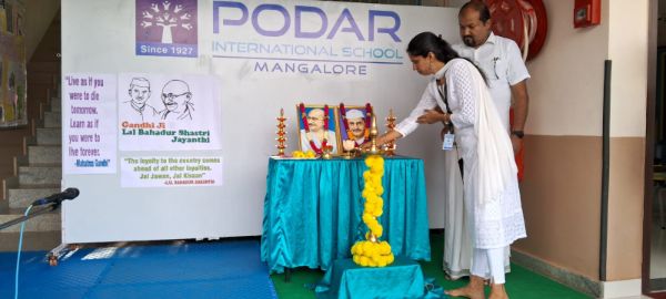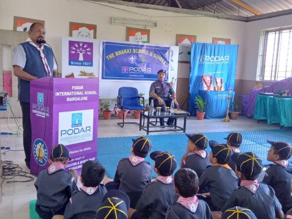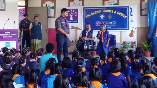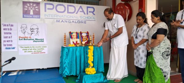 Podar International School Mangalore celebrated Gandhi Jayanti and the birth anniversary of Lal Bahadur Shastri, honoring their contributions to the nation and also inaugurated its Scout and Guide, Cubs, and Bulbul units with Chief Guest Dr. Rahul Tonse Ganesh, Assistant District Commissioner of Bharath Scouts and Guides, Mangalore North.