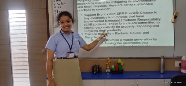 Miss Bhavika, also from Grade 8, delivered an insightful speech on the importance of Hindi Divas, emphasizing the role of Hindi in uniting the nation.
