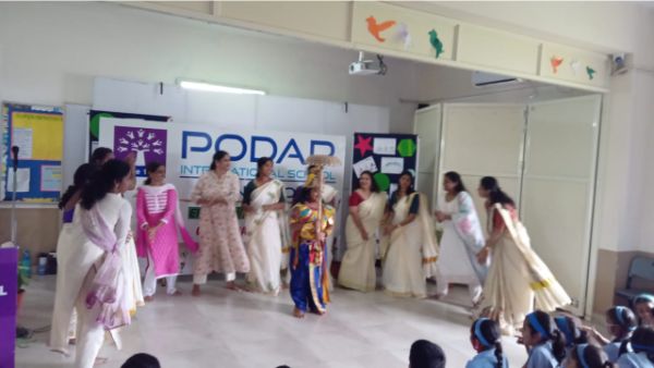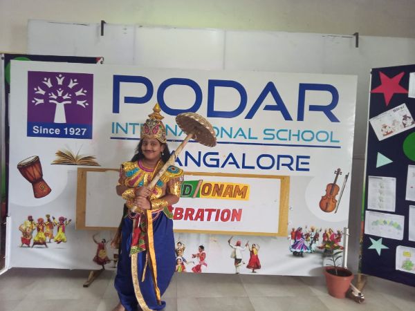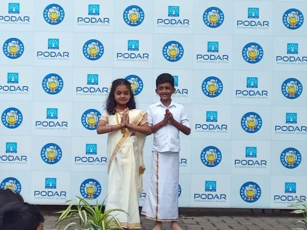 Podar International School, Mangalore, celebrated Onam with great enthusiasm and splendor. The event, hosted by Prakanya P of Grade 8, was a vibrant showcase of the rich cultural traditions associated with the festival.