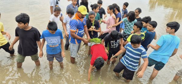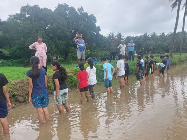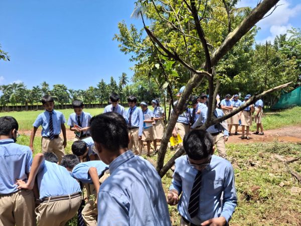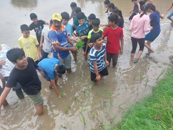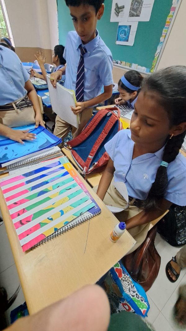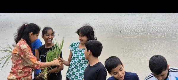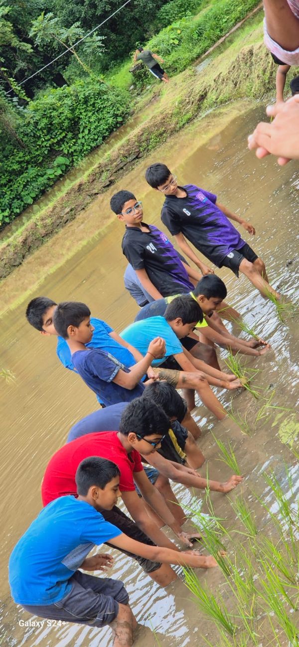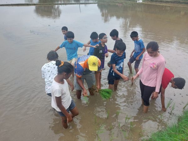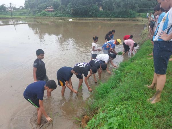 Grades 1-4 learned book binding skills, Grades 6-7 explored a paddy field hands-on, and Grade 8 volunteered at Bala Samrakshana Bhavan.