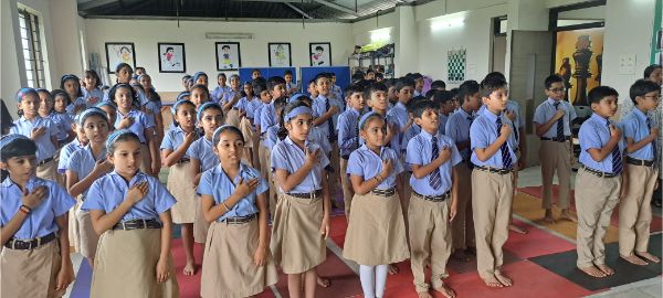 On Independence Day, we celebrated with a welcome dance, flag unfurling, and the national anthem. Highlights included a cultural program, the launch of our newsletter, a moment of honoring our senior teacher, a guest speech by Prof. Radhakrishna K, and sweet distribution.