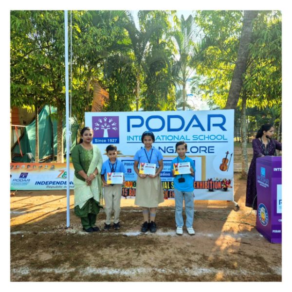 Podar International School celebrated Kannada Rajyothsava with pride and enthusiasm! Students honored the significance of the day by dressing as iconic Kannada freedom fighters and influential personalities. The celebration featured vibrant traditional performances, dance, and patriotic songs.