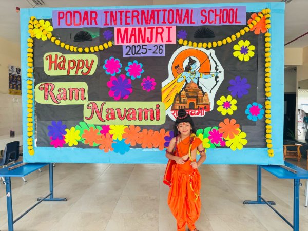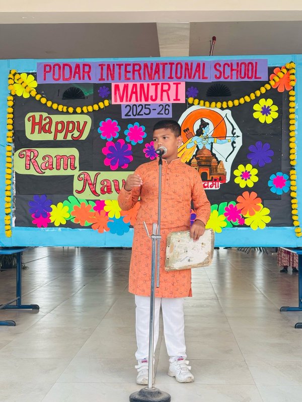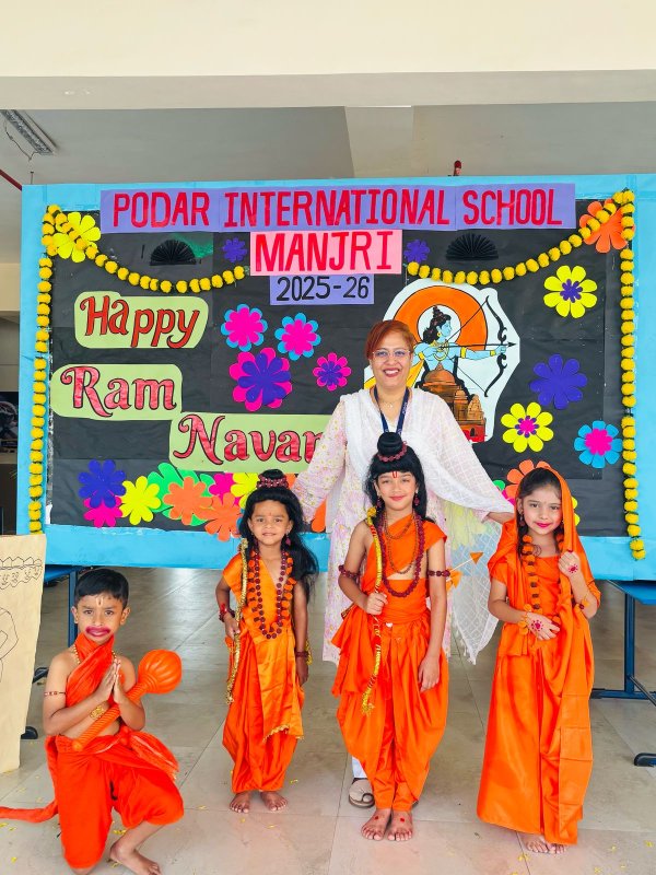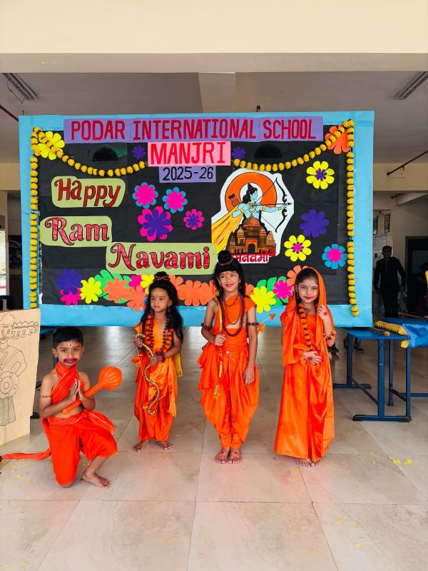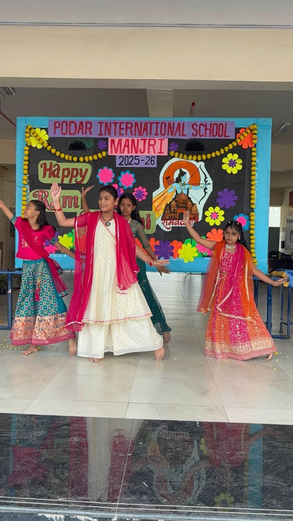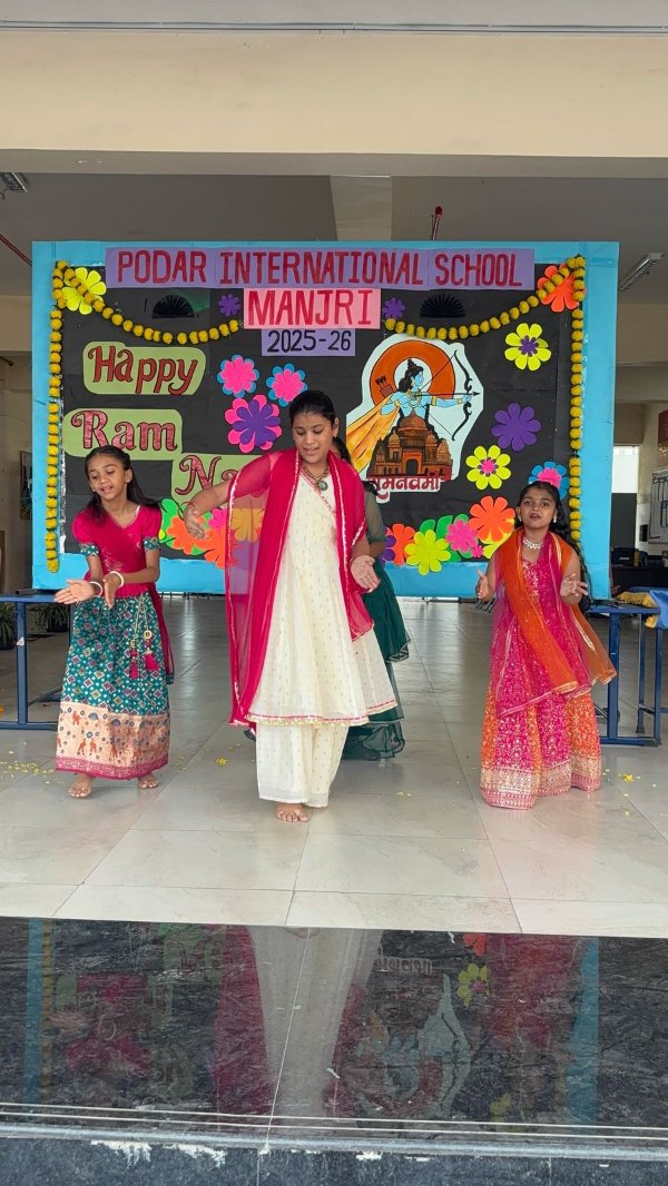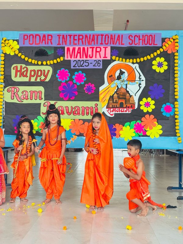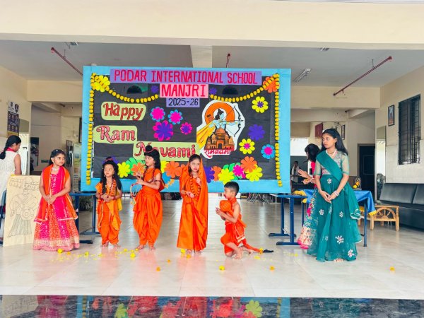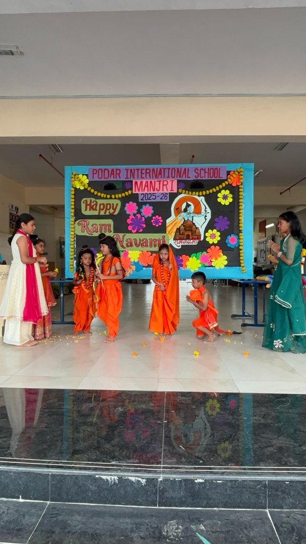 Podar International School, Manjri celebrated Ram Navami with great enthusiasm and devotion through a vibrant special assembly. The event featured a delightful blend of cultural performances, where students participated in a heartwarming skit depicting scenes from Lord Ram's life, followed by a soulful group song and an energetic group dance that captivated the audience.