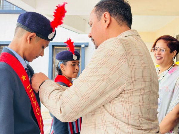 Badges of honor were conferred upon the newly elected leaders of the four houses – Aqua, Ventus, Terra, and Ignis. The newly appointed Head Girl, Miss Payal More, and Head Boy, Master Manthan Varude, delivered inspiring addresses, expressing gratitude and sharing their vision. The ceremony culminated in the oath-taking, where the student council pledged to serve with honesty and dedication.