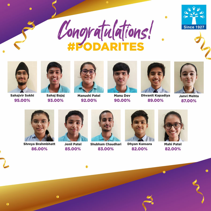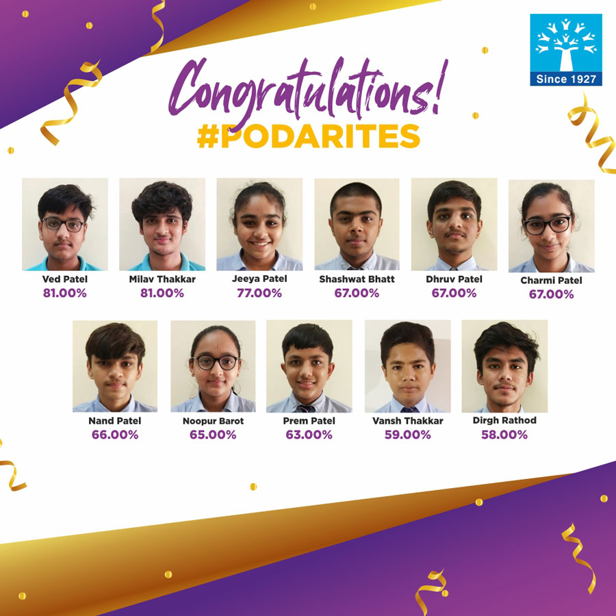 Podar International School, Mehsana would like to congratulate all our students who passed out with flying colours in the CBSE Std X Board Examinations.