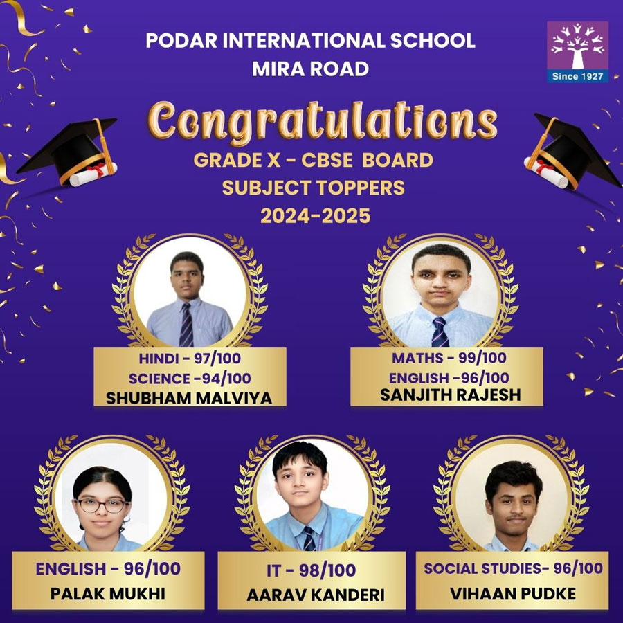 Celebrating Success: Podar International School Mira Road Students Shine in 10th CBSE Board Exams 2024-2025