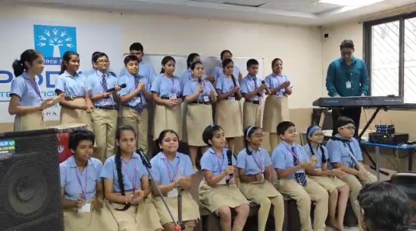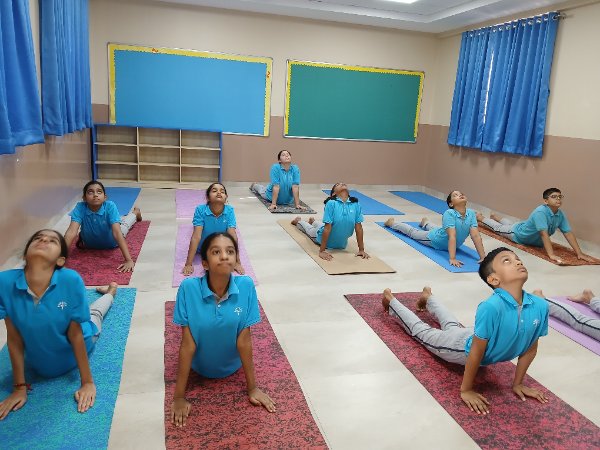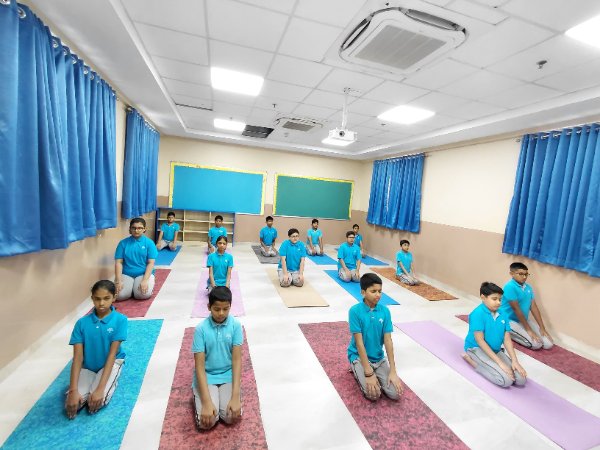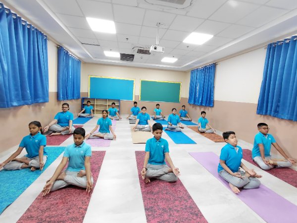 Student's & coaches at Podar International School spread the power of ancient Indian practice of exercise .