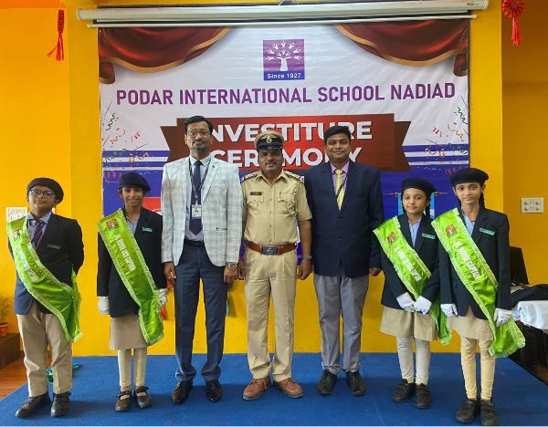 Podar International School, #Nadiad, celebrated Investiture Ceremony with great pride and enthusiasm, marking a significant step in fostering leadership and responsibility among students. The event took place on 01 July 2025 in the presence of esteemed dignitaries, including Chief Guest Mr. Santosh M Jadhav (Police Sub Inspector) and Principal Dr. Yogesh Jain.
