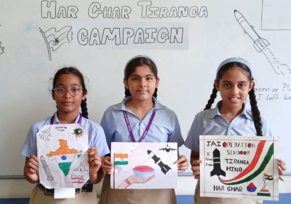 As part of the celebration, students enthusiastically participated in a drawing activity, creatively showcasing the beauty of our Tiranga and expressing their love for the nation through colours and imagination.