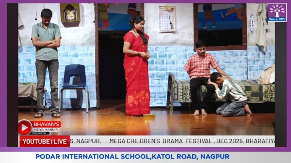 Podar International School, Katol Road, Nagpur proudly grabbed the 2nd Best Drama Production Award, along with a cash prize of ₹10,000 and a memento, at the prestigious Bhawan Baldarbar – Mega Children’s Drama Festival.
