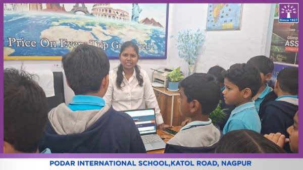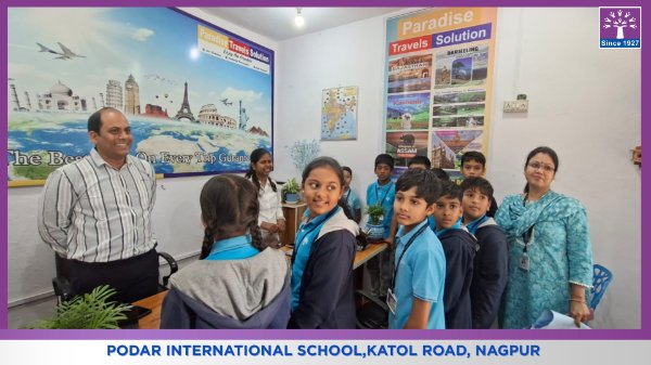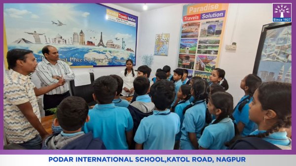 Under the theme “From Maps to Apps: Exploring Travel in the Digital Age,” the students of Grade V went on an exciting field trip to a Travel Agency. They interacted with travel agents and gained real-world insights by asking questions such as What is Tatkal booking? What is tour packaging? and How has online booking transformed travel in the digital world?