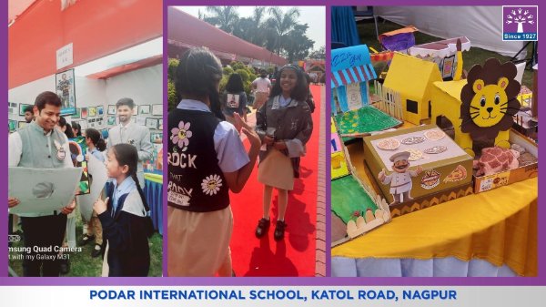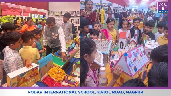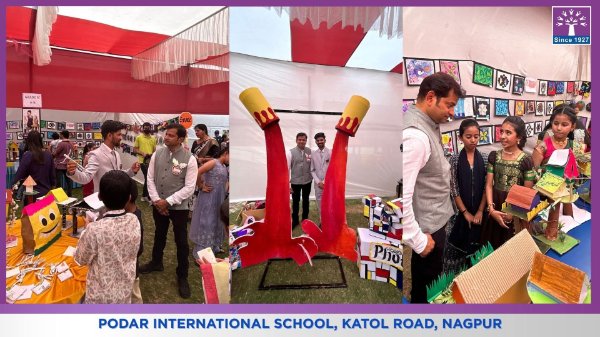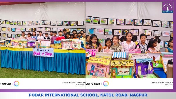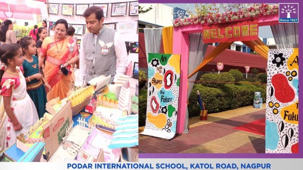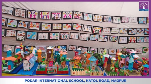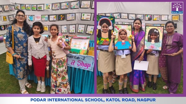 Podar International School successfully conducted its Annual Art Exhibition “Art Shapes the Future,” where students from Grades 1 to 8 enthusiastically participated and showcased their creativity through artwork, Design Lab activities, and the final project Wearable Art.