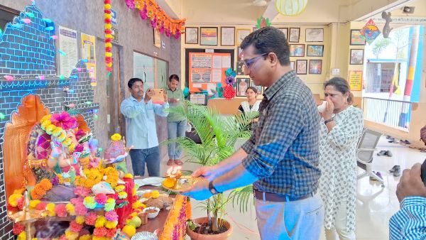 Lord Ganesha's divine presence graced School, as we celebrated His blessings in a heartwarming ceremony before the grand immersion event. All staff came together in reverence, offering prayers and expressing their devotion with enthusiasm.