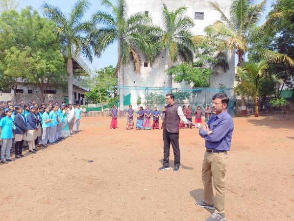 During the assembly, it was a proud moment to announce that Miss Sharvari Sainath Hamand participated in the Saptarang Cultural Festival 2025, organized by Saptarang Sevabhavi Sanstha, Lay School of Performing Arts, Nanded, and the District Administration, Nanded, in association with the Ministry of Culture, Government of India, where she secured the 2nd position.
