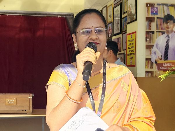 Hon'ble Principal Dr. Malini Sen and Respected Vice Principal Mr. Pravin Somvanshi, along with the leadership team, respectfully garlanded the portrait of Vishnu Vaman Shirwadkar as a tribute to his literary legacy. Teachers also delivered insightful speeches on the importance of the Marathi language and its cultural significance.