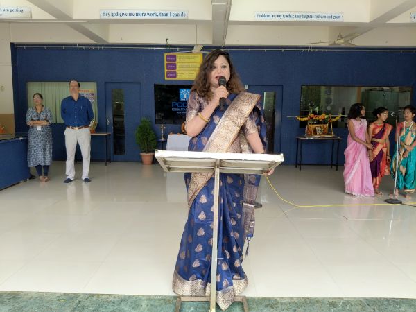 The event commenced with the auspicious Saraswati Poojan by our Honorable Principal Dr. Malini Sen, Vice Principal Mr. Pravin Somvanshi, and the Leadership Team.