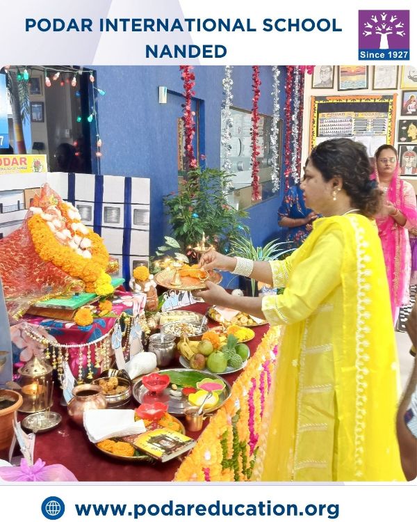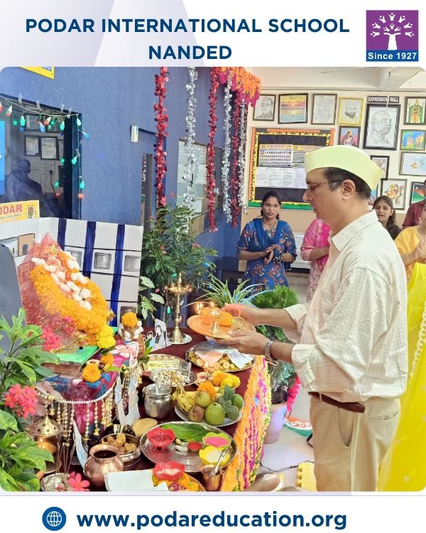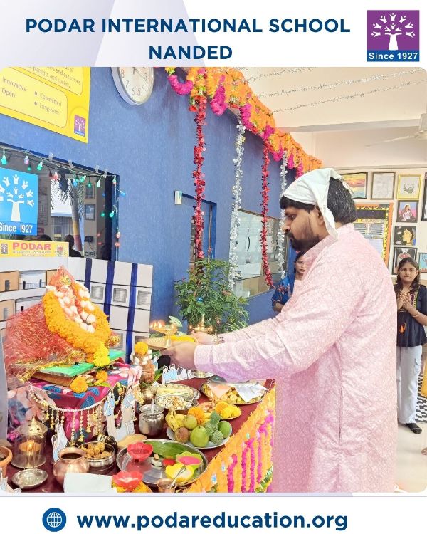 The arrival of Lord Ganesha was celebrated with immense zeal and devotion at Podar International School, Nanded. The entire campus was filled with joy, faith, and festive spirit as the school community welcomed Vighnaharta with open hearts.