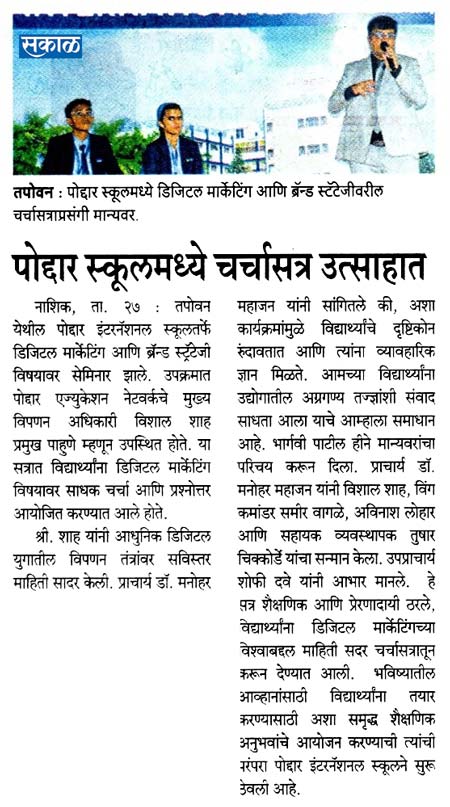 Publication : SakalPodar International School, Nashik recently hosted a...