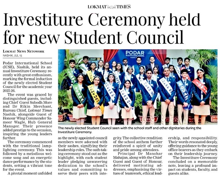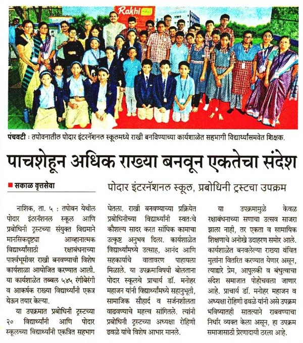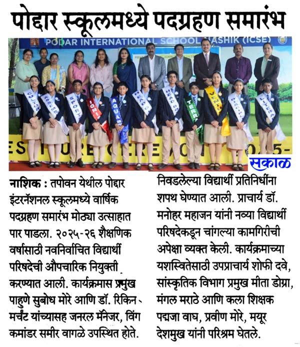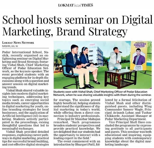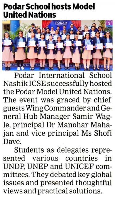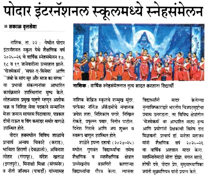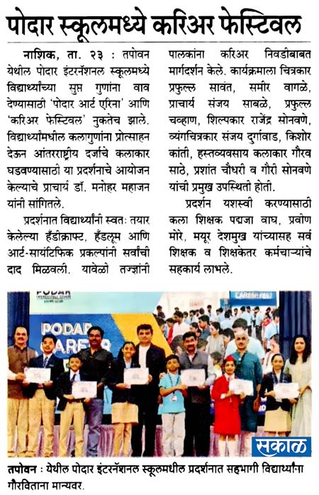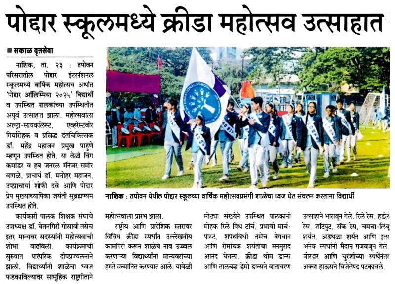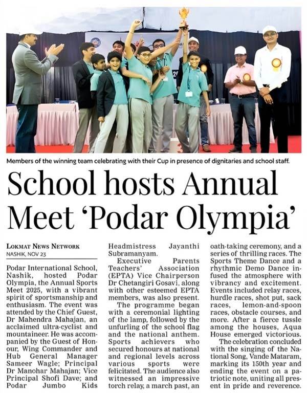 Publication : Sakal / Lokmat TimesPodar International School, Nashik, h...